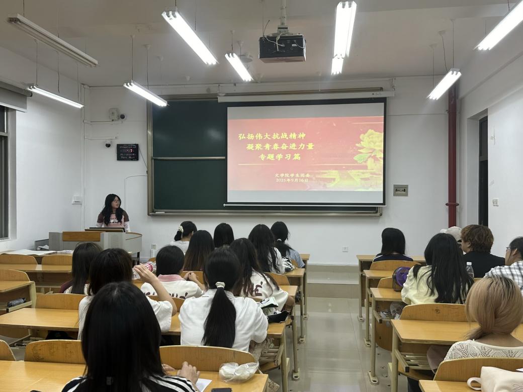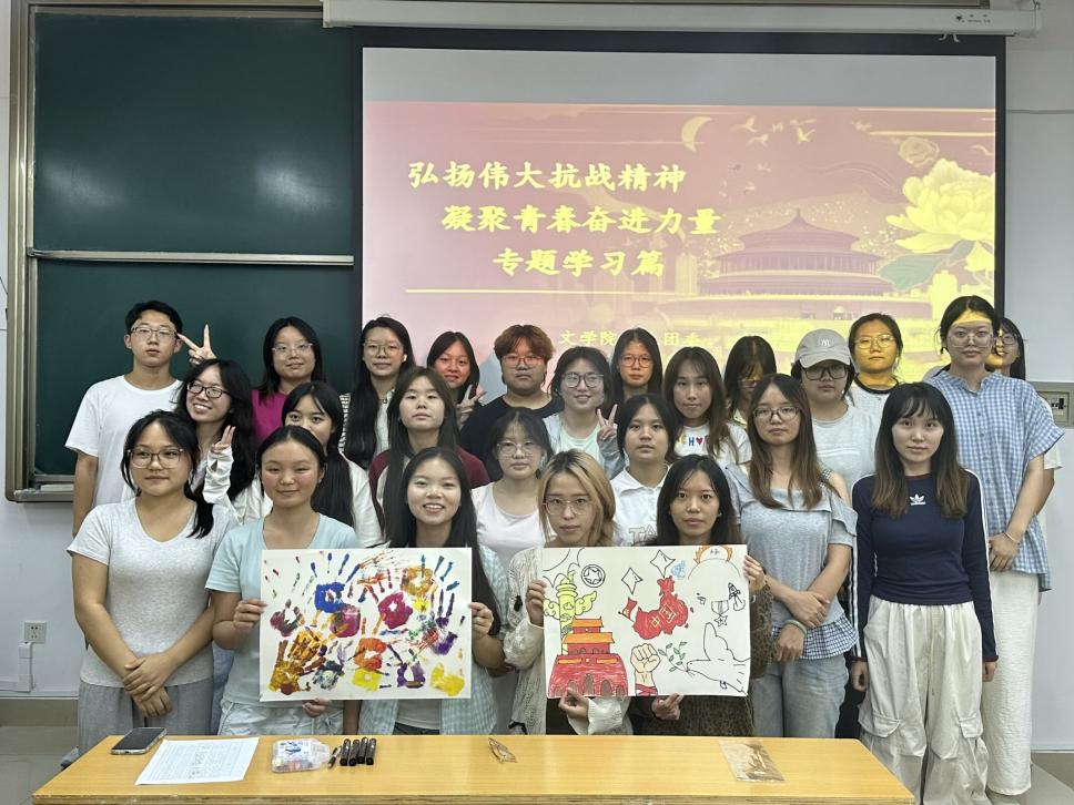 为传承红色精神,汇聚奋斗伟力,贵州大学文学院团委于9月16日晚在逸夫楼405教室开展“弘扬伟大抗战精神,凝聚青春奋进力量”主题团日活动。通过主题演讲、诵读红色家书、手印画创作、接力绘画等多元形式,引导文学院青年学子厚植家国情怀,赓续青春奋进力量。