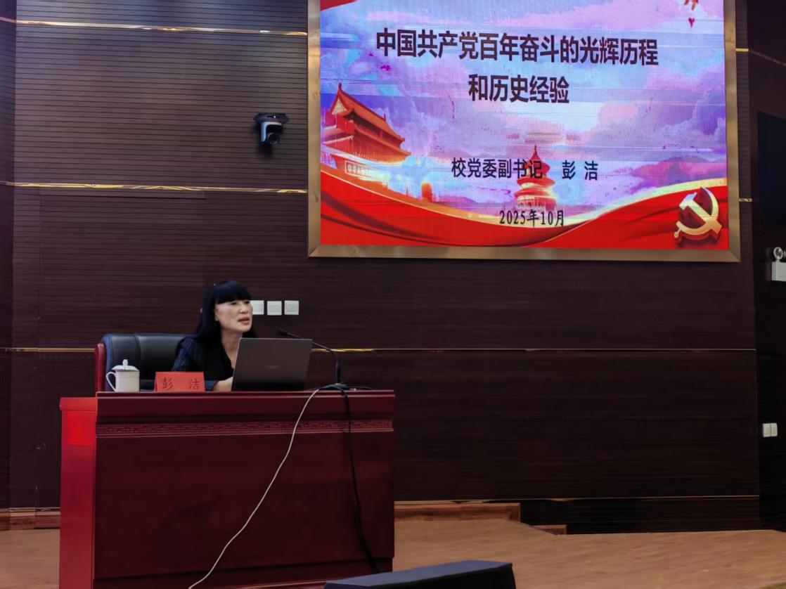 彭洁以“党的百年奋斗光辉历程和历史经验”为主题,紧扣党的十九届六中全会《决议》核心要义,系统梳理了新民主主义革命、社会主义革命和建设、改革开放和社会主义现代化建设、中国特色社会主义新时代四个历史时期的伟大成就。她从“浴血奋战、百折不挠的新民主主义革命时期”讲起,剖析党反对帝国主义、封建主义、官僚资本主义,为民族独立和人民解放创造根本社会条件的奋斗历程,结合“中国共产党创建”“伟大建党精神形成”等内容,阐明“开天辟地大事变”的历史逻辑;随后结合“五年计划”,阐释“自力更生、发愤图强的社会主义革命和建设时期”党在制度建设、工业奠基等方面的探索;再聚焦“解放思想、锐意进取的改革开放和社会主义现代化建设新时期”,解读以邓小平理论为指引,党把工作中心转移到经济建设、开创中国特色社会主义的实践密码;最后深入“自信自强、守正创新的新时代中国特色社会主义时期”,以脱贫攻坚全面胜利、全面建成小康社会等“三件大事”为例,深刻解析了新时代十年的伟大变革。