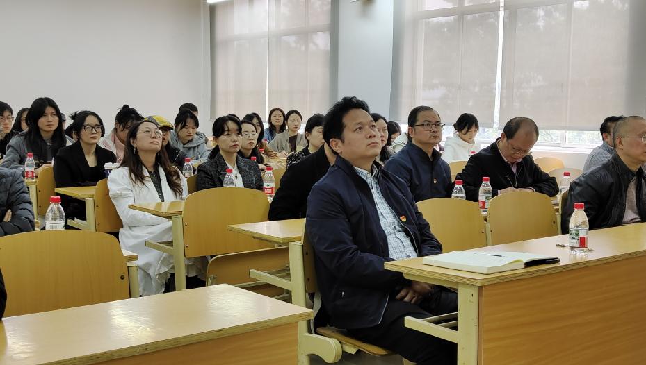 2025年10月24日下午,贵州大学举行了2025年党员基本培训第二次集中大课。为确保全院师生党员深入参与学习、深刻领会培训精神,文学院全体教职工党员和学生党员共100人,分别在东校区逸夫楼406D、407D两个分会场同步集中观看学习教育部党组书记、部长怀进鹏主讲的专题辅导报告。